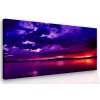 Obraz na plátně plný romantiky. Dechberoucí pohled na zapadající slunce, zahalující krajinu do magického závoje fialové barvy. Krásné a originální pojetí přírodního úkazu.
