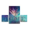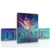 Netradiční třídílný obraz v příjemných barvách s chmýřím pampelišky a oblíbeným nápisem HOME dodá teplo domova.
