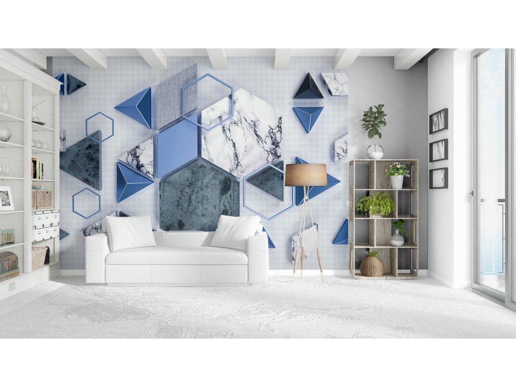 Moderní 3D tapeta z vliesu s geometrickými tvary dokonale zmodernizuje váš interiér. Dopřejte si luxusní ozdobu v podobě tapety na stěnu.