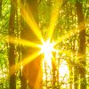 Fototapeta letního zeleného lesa přes který prosvítají sluneční paprsky vás nabije pozitivní energií.