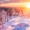 Romantický zimní západ slunce na zasněžených horách dodá něžnou náladu třeba vaší ložnici.